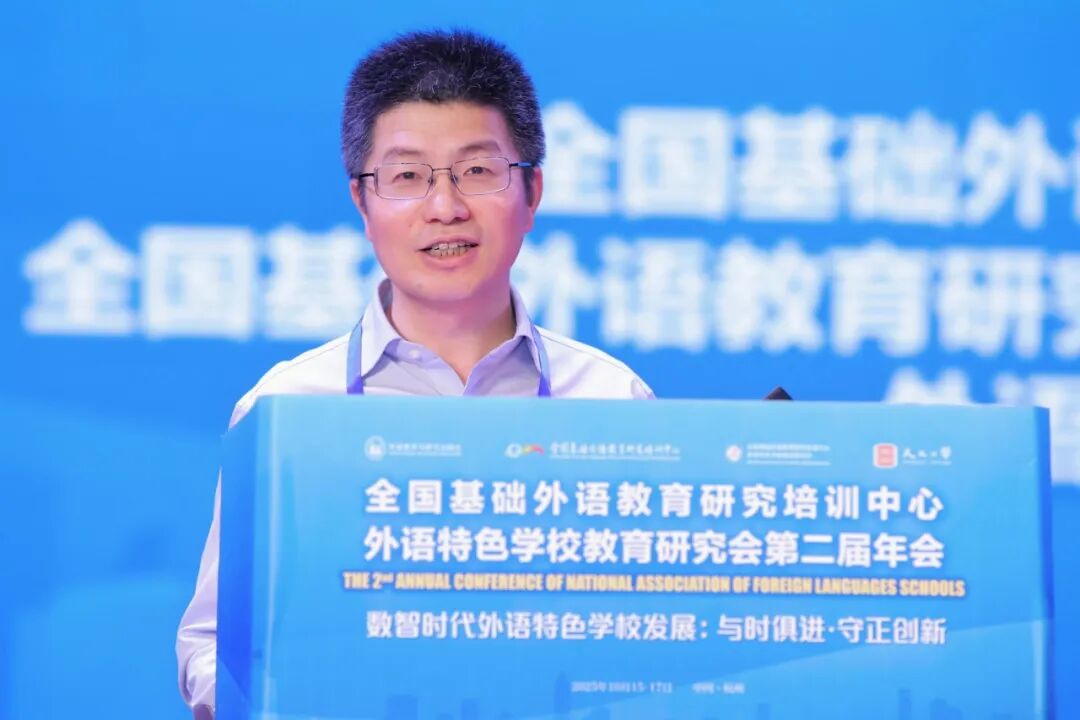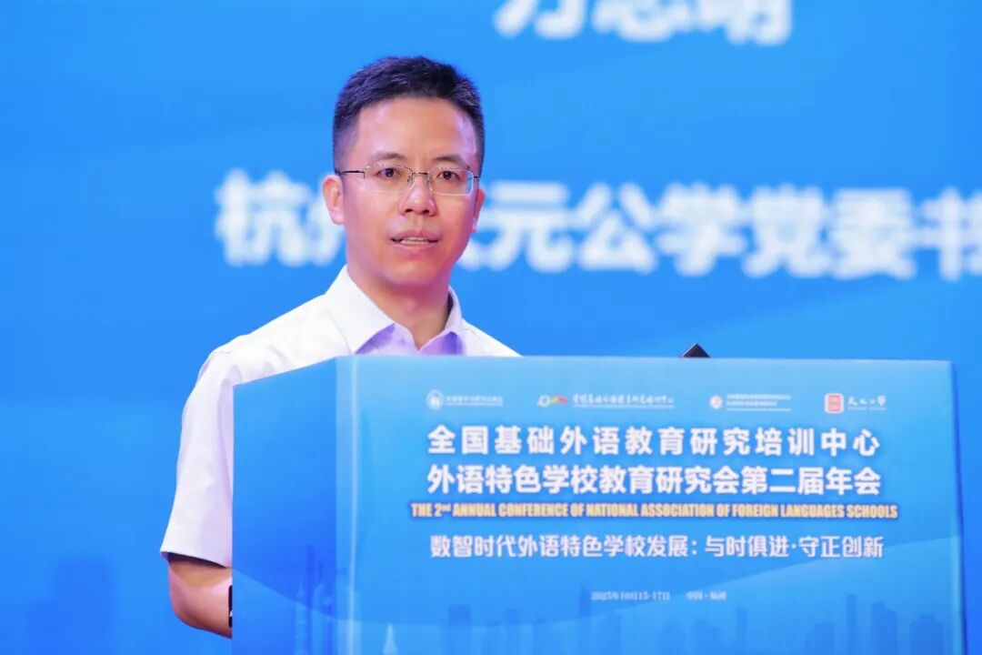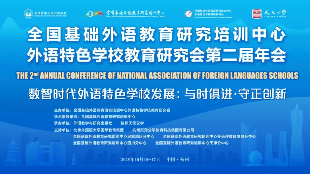 2025年10月16日,由全国基础外语教育研究培训中心(以下简称“全基中心”)指导,全国基础外语教育研究培训中心外语特色学校教育研究会(以下简称“全基中心外语特色学校教育研究会”)主办,外语教学与研究出版社(以下简称“外研社”)、杭州天元公学承办的“全国基础外语教育研究培训中心外语特色学校教育研究会第二届年会”在杭州顺利召开。