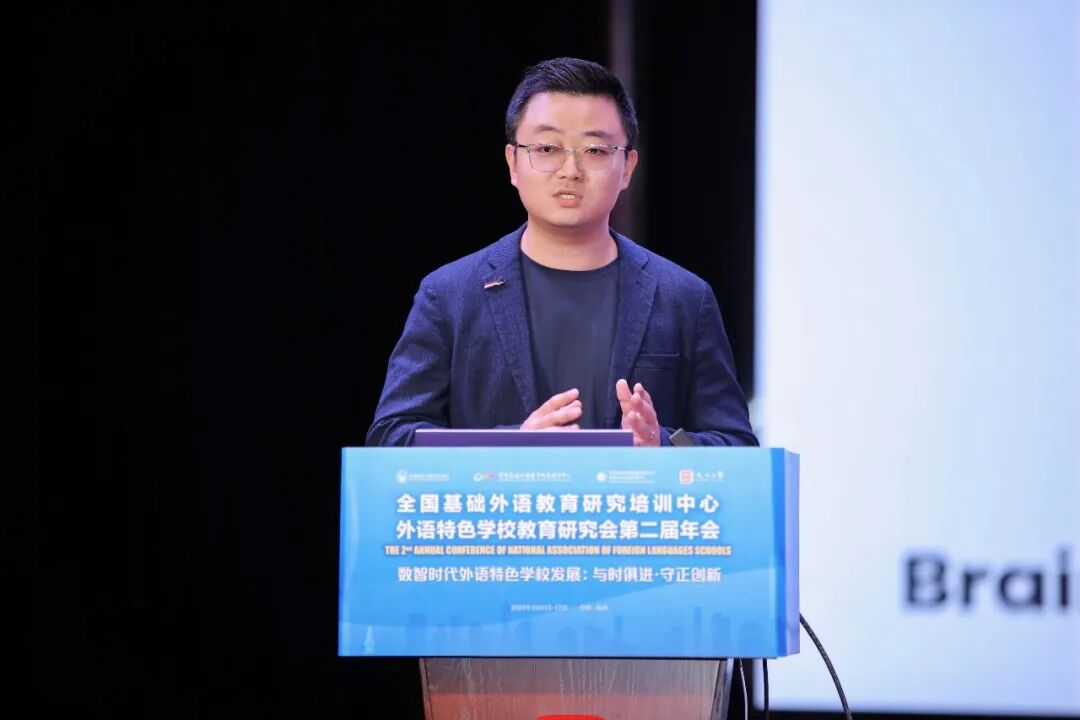辛伯谌表示,脑科学作为人类科学的核心疆域,其衍生的脑机接口技术为教育数字化转型提供了底层支撑。该技术可精准捕捉学习者神经活动特征,为破解外语教学中“千人一面”的困境提供新范式。在学术应用层面,脑机接口技术可通过解码布洛卡区、威尔尼克区等语言相关脑区信号,构建“神经——语音——行为”多模态评估体系,实时识别外语发音偏差、感知障碍等隐性问题。结合AI算法开发的个性化教学系统,能根据学习者神经反馈动态调整外语听辨、发音训练策略,实现从经验驱动到数据驱动的教学转型,这与数智时代外语教育精准化、个性化的创新需求高度契合,为外语特色学校的教学模式突破提供了技术路径。