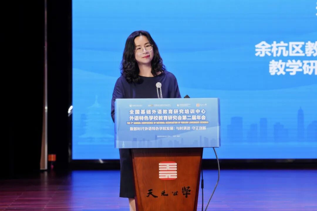 郑经潮强调,数字化与智能化正以前所未有的速度重塑教育形态,在此背景下,本届年会的召开正当其时,意义深远。杭州作为创新之城,正在展现出推动科技创新与产业融合上的强劲势头,而余杭作为杭州城西大走廊核心区,致力于打造具有全球影响力的人工智能创新高地,并将教育数字化改革作为教育高质量发展的关键抓手,努力让教育因科技而更精准、更高效、更个性化。本次年会不仅为全国教育同仁搭建了交流与展示的平台,也将进一步助推区域教育的创新发展,汇聚全国外语特色学校的智慧与力量,助力建设高质量的基础外语教育体系。