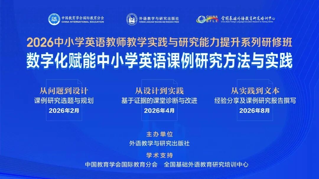 2026年“数字化赋能中小学英语课例研究方法与实践”系列研修班,正是为回应这一共同命题而生,为处于不同专业发展阶段的教师——从职前培养到一线实践,从区域引领到学校管理,搭建一个共同生长、相互启发的支持框架。